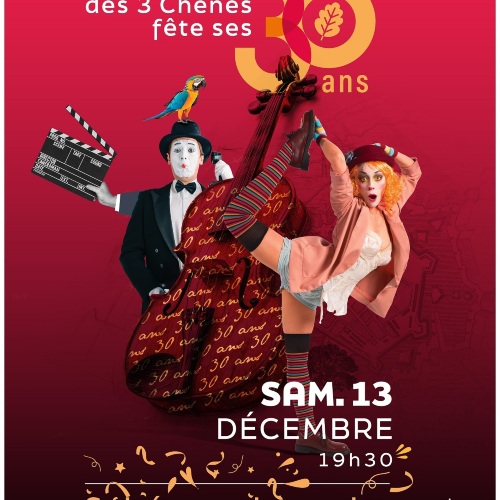 Afficher le planSoirée Anniversaire des 30 ans du Théâtre des 3 Chênes Date : Samedi 13 décembre 2025 Heure : 19h30 Durée : 1h30 Pour célébrer trois décennies de passion culturelle, de créativité et de partage, le Théâtre des 3 Chênes vous invite à une soirée exceptionnelle ! Ce rendez-vous débutera avec des courts témoignages qui nous plongeront dans l’histoire riche et émouvante de notre théâtre en mettant en lumière son évolution depuis les années 80. La soirée se poursuivra avec un événement unique, spécialement imaginé pour célébrer cet anniversaire. Des artistes nous feront vibrer, révélant la richesse et la diversité des arts de la scène. Danse, théâtre, magie, musique seront au rendez-vous Rejoignez-nous, pour vivre ensemble cette création artistique dans une ambiance rythmée et chaleureuse